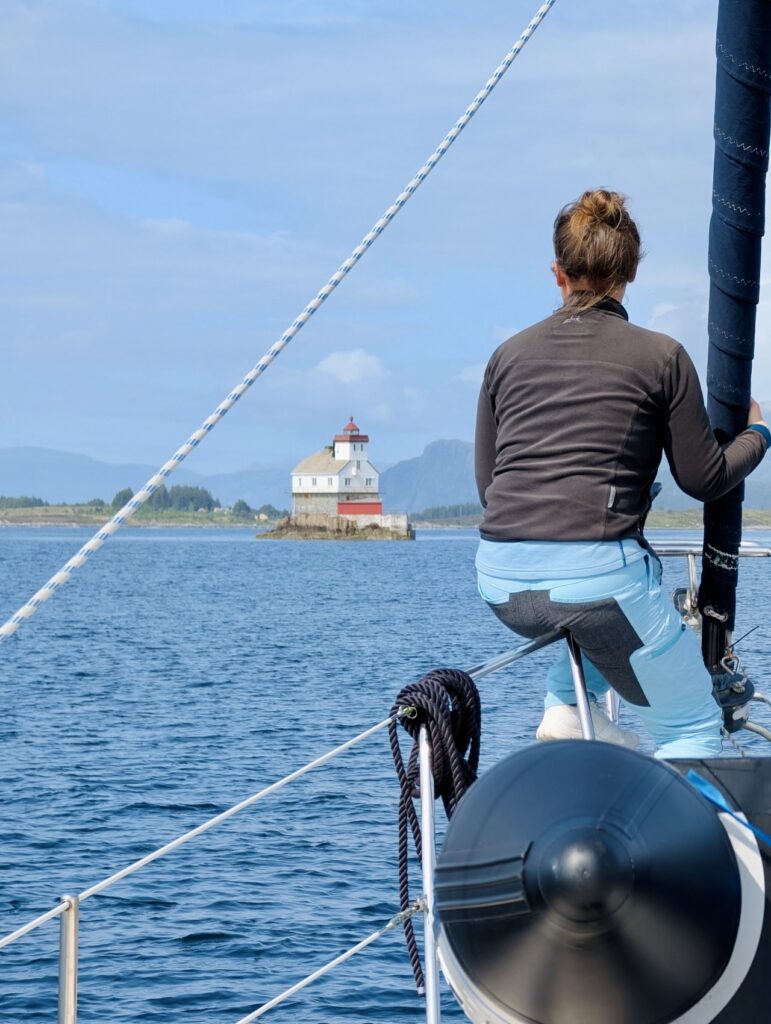 The final stage in June took us via the small island of Grip, past the outside of the large island of Hitra, and then further north along the coastline. Grip is truly worth the small detour. Just 9 nm from Kristiansund, it not only offers charming little wooden houses, but also one of the northernmost and smallest stave churches. After exploring the island, we turned in early, as we wanted to set off early the next morning and sail for 24 hours again to cover some distance.