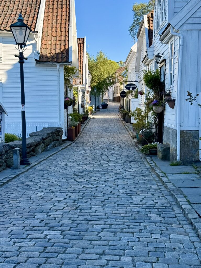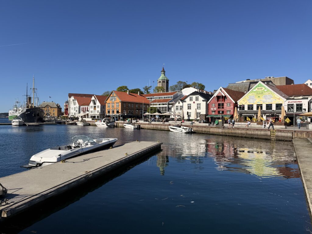 But the short hop on Sunday made up for everything so far. Sunshine, not a cloud in the sky, 6 to 10 knots from the west, and later even a bit more. For the 12 miles we left the mainsail packed away. In weather like that, we did not mind the slow pace at all. Before Stavanger we sailed along with the regatta fleet for a while and were already moored to the buoy off Line by afternoon coffee time. I had picked the island because of its lovely natural harbour. Once everyone had left the little jetty the next day (Monday), we moved over there and lit the barbecue in the evening. We stayed for a few days. The island offered good shelter, and we wanted to look around Stavanger at the weekend and watch the parade on the National Day (17 May). On Thursday we crossed the bay to Stavanger. We stayed there for five days and enjoyed the beautiful city with its maritime flair around the harbour and its old colourful wooden houses. We had expected a port city with more of an industrial feel. The exact opposite was true.