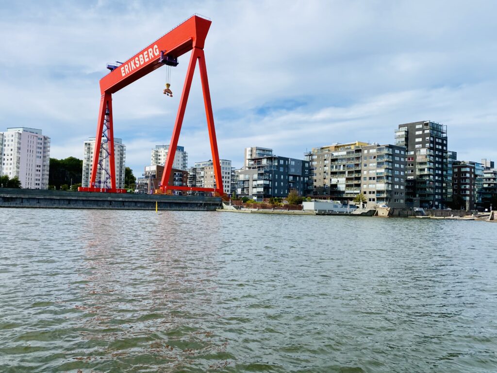 After visiting the fortress, I called Jordfallsbron from the jetty and asked about the next opening. The nice man said it would still be a little while and then rang us back shortly before opening time. That saved us from having to wait in front of the bridge in the not insignificant current. The next bridge opening for Gothenburg’s Hisingsbron would be at 14:35 or 16:35. As we probably wouldn’t have made the first one anyway, we drifted downriver towards Gothenburg almost at idle speed and at the pace of the current. The weather was lovely once more and we really enjoyed the trip.