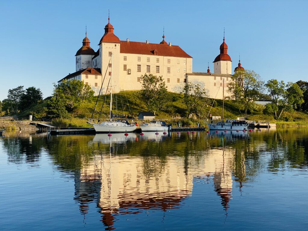 The day after that, there’s no chance of sailing, absolutely no wind at all. Lake Vänern is flat calm. We motor on to Läckö Slott. Here too, it’s already off-season. Even the container with the sanitary facilities has been locked up already. But never mind, in return we have almost the whole harbour with a castle view to ourselves. The next day, a bike ride takes us all the way round the island of Kållandsö.