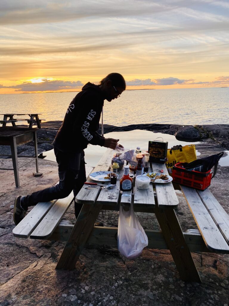 The next day we head for a small island called Lindökroken. At this time of year, we have it entirely to ourselves. Besides a jetty, there are also SXK buoys, and of course you can anchor too. We have a barbecue on the west coast, watch the sunset and later spot the Northern Lights again in the starry sky.